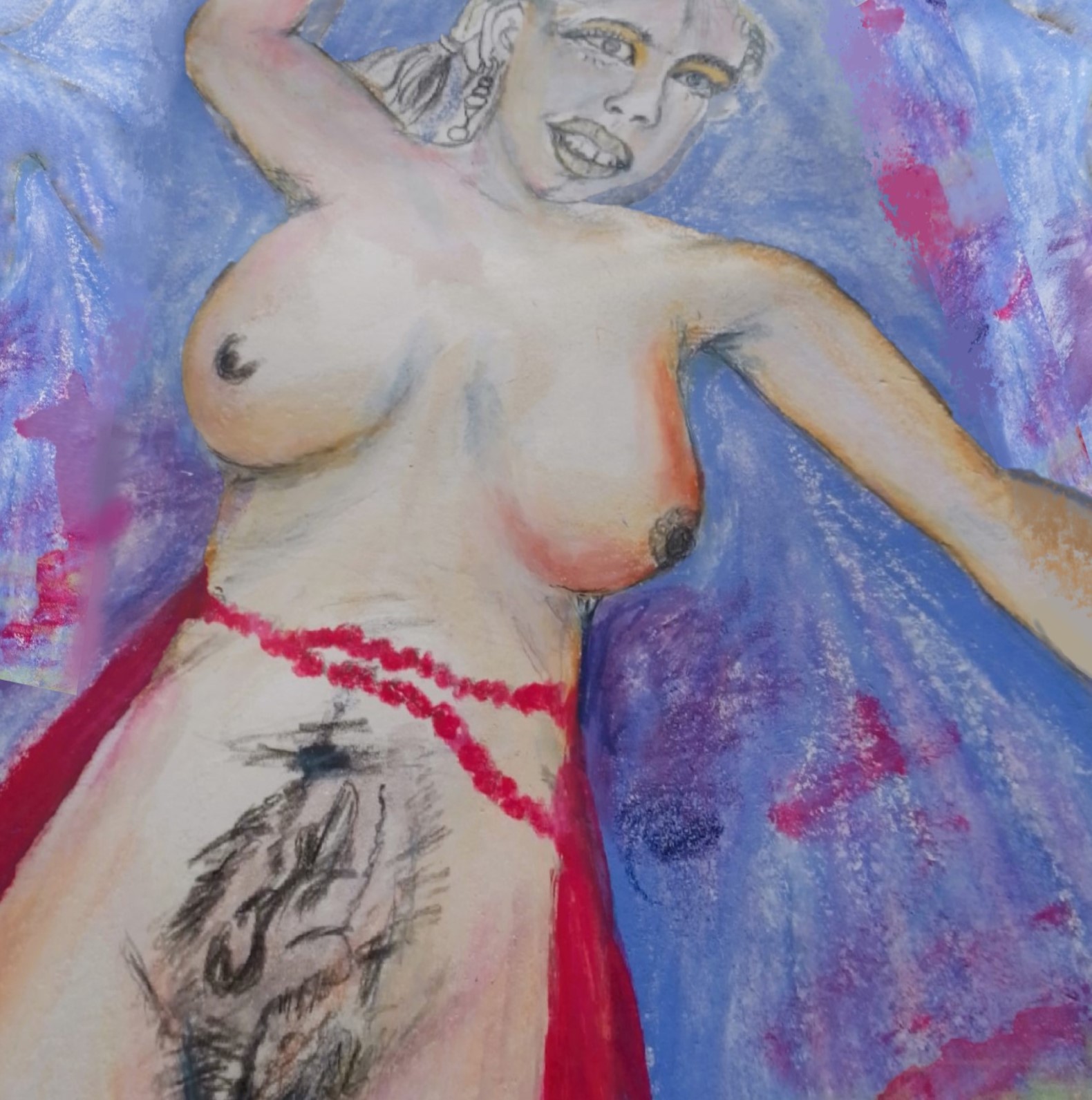 Ce velours n’est pas simple tissu — c’est une peau mystique, tissée de filaments lunaires et de poussières émotionnelles. Il réagit, s’illumine, se trouble au rythme des pensées silencieuses de la jeune femme.
