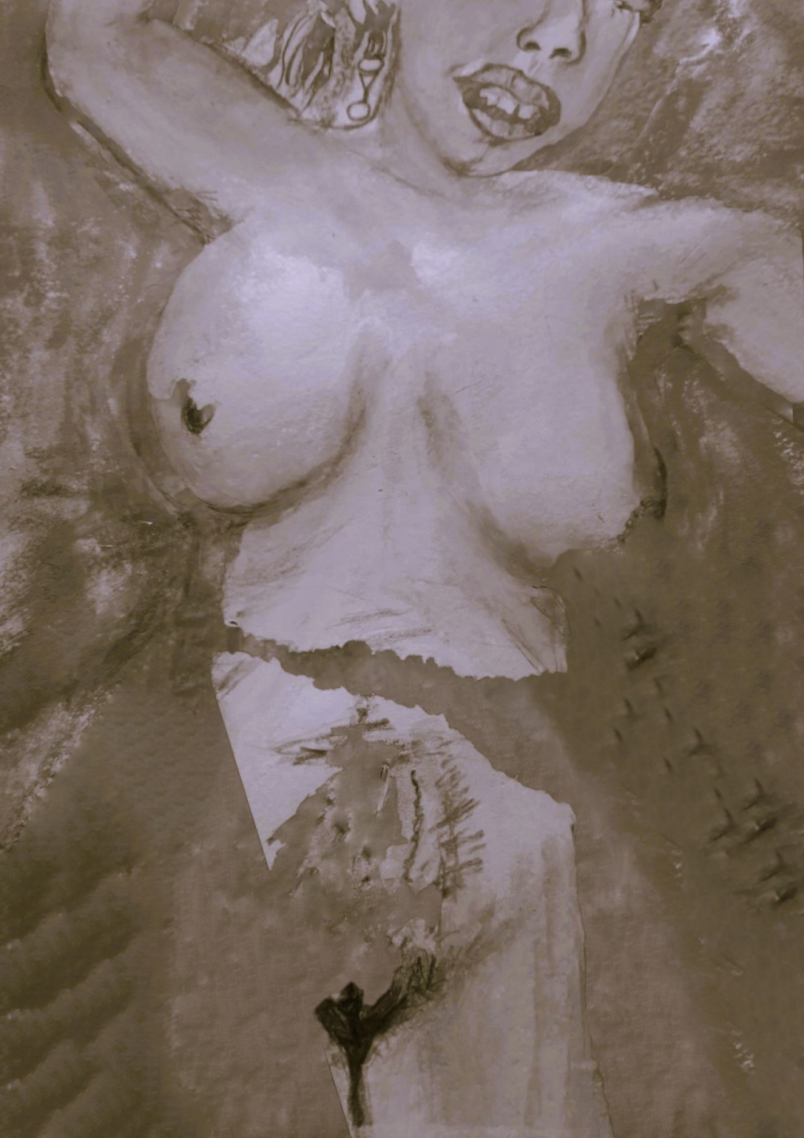 Quand elle recule enfin, le murmure reprend. La cascade retrouve son rythme, un peu plus fort, comme si elle expirait ce qu’elle vient de vivre. Le velours conserve ses murmures — mémoire d’un instant suspendu — palpite encore doucement.